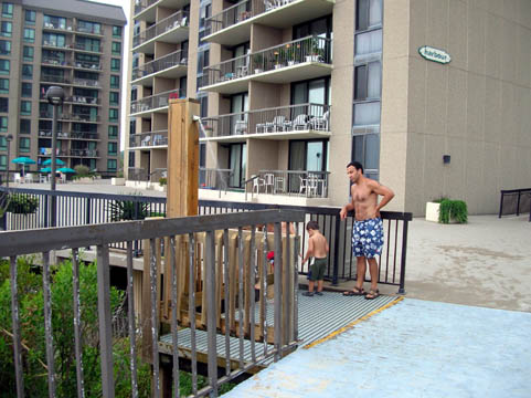 Linda, Roy and Paul at the top of the stairs from the beach to the high rises.