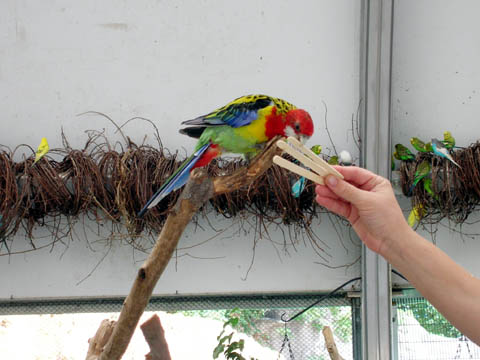 The rosellas weren't so sure about sharing space with parakeets and humans...