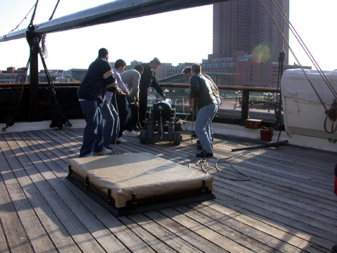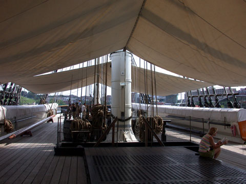 The gun deck. When they fire the little cannon on the deck above, there's a lecture on how all the various weapons worked -- apparently given the right bore, the effective range could have knocked a given letter out of the Domino Sugar plant sign across the harbor.