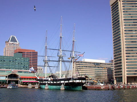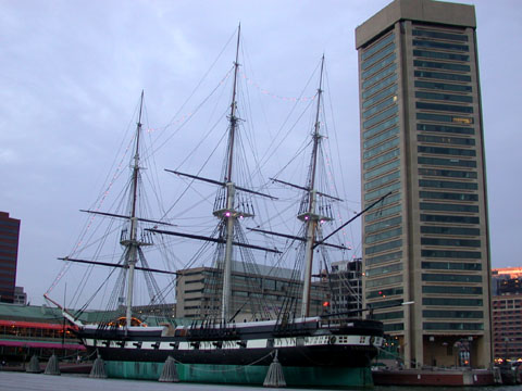 The Constellation from the steps of Harborplace. That's part of the National Aquarium in the lower left.