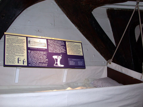 Sickbay was open this time! In addition to the cots, we got to see all manner of gruesome instruments and bottles of scary-looking medicines (no alcoholic tincture of laudanum, heh).