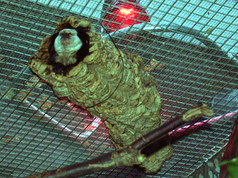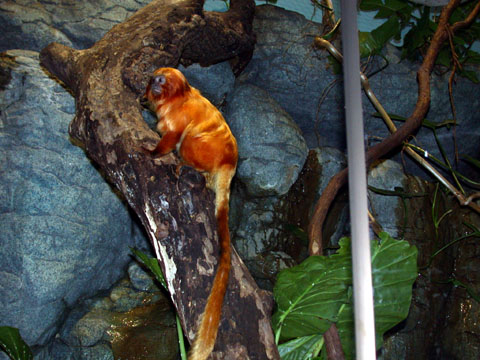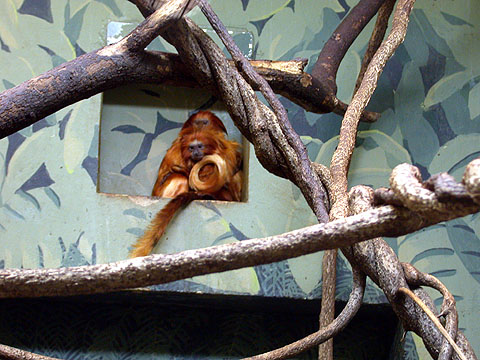 In the summer they live outside in the trees on the walk from the bear enclosures, where the zoo is trying to breed a population. In the winter they move indoors and can be seen in a great many of the exhibits in the Small Mammal House.