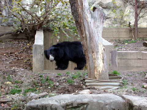 A sloth bear waiting impatiently to be allowed indoors for food and sleep.