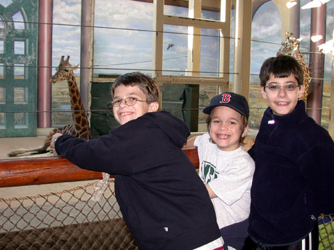 Daniel, Adam and Daniel's friend Casey in the Elephant House. There is a fairly young giraffe, plus several adults, though the oldest giraffe at the zoo died last year just days after we had seen him outdoors.
