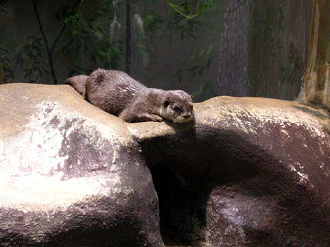 Asian otters must be in their underwater lair when the zookeeper arrives with the fresh fish. They exhaust themselves chasing each other around and need some quiet time.