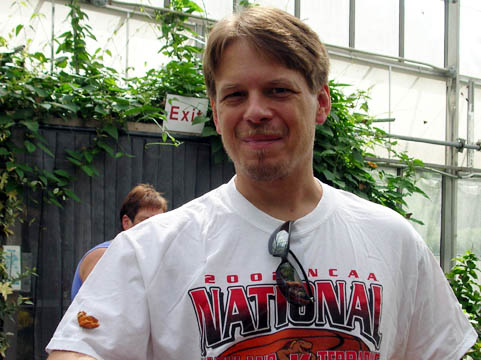 The butterfly garden at Brookside Gardens in Wheaton Regional Park is relaxing, with all those wings fluttering in near-silence -- most of the conversation is kids proving to their parents that they know more about chrysalises and butterflies than the adults know (mine certainly do) and there are many amateur photographers comparing notes on how best to photograph the very quick postman and tiger longwing.