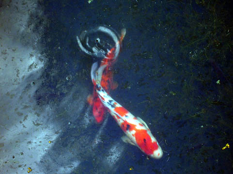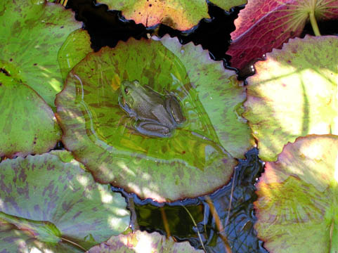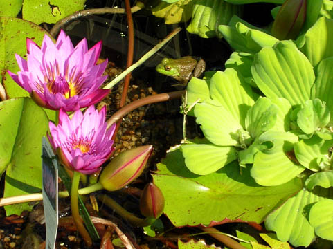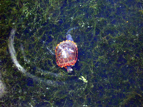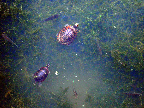 Since it was a spectacularly beautiful day, we also went for a walk in the outdoor gardens, where there are fewer geese this year and the ponds seem to have become very overgrown. This is bad in some ways, as the water is thick with scum and algae, but good in others, because the turtles, frogs and fish were all easily visible just under the surface in the middle of all the plants. We must have seen ten turtles in one spot by the Japanese garden. We had to get home for soccer practice so we didn't get to go to the nature center but we saw plenty of wildlife out in the gardens.