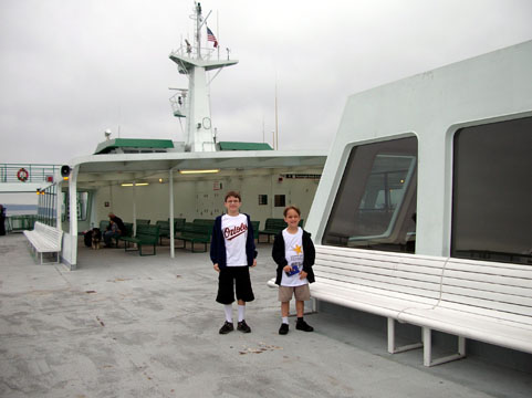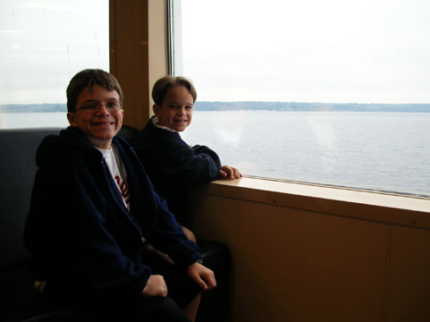 And the boys sitting on the main deck of the ferry, with the cars below.