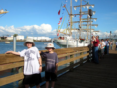 Cuauhtemoc and Pallada, the former a Spanish-built ambassador of the Mexican navy whom we had seen before at Sailabration Baltimore 2004, the latter a modern Polish fully-rigged ship sailing from Russia. Both of these ships train cadets.