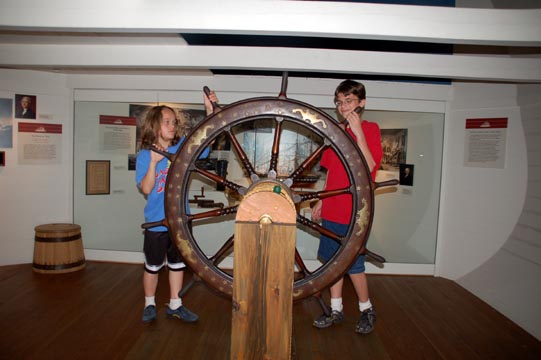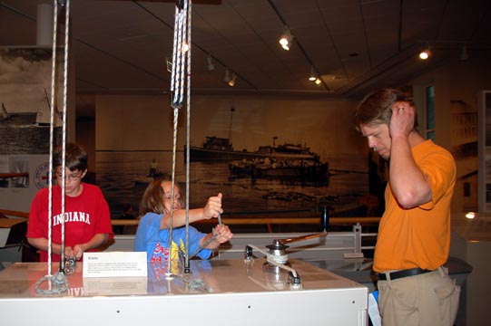 In the Chesapeake Bay gallery, the boys try their hands at knot-tying.