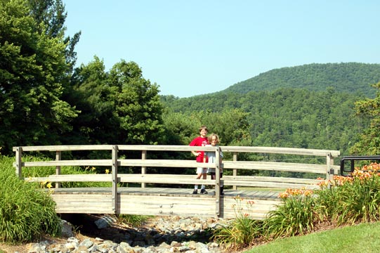 On a bridge at a visitor center in North Carolina's Great Smoky Mountains.