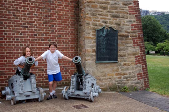 Daniel and Adam outside the visitor center at Fort Pitt, built on the land where the original fort once stood.