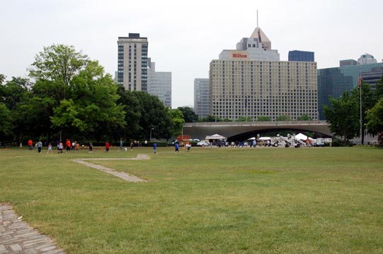 The bricks mark the outline of Fort Duquesne, the French outpost destroyed by the British.