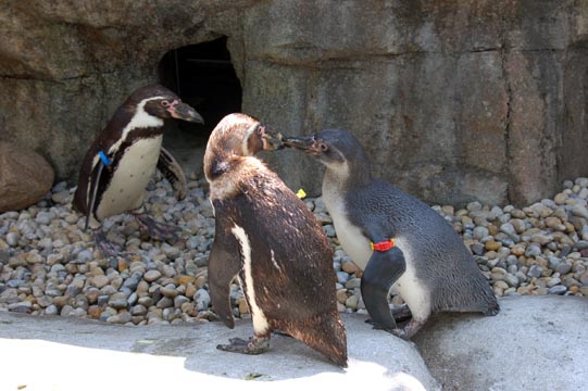 ...as well as the parents of this baby penguin, which may be as big as they are but was just born this year and is not yet eating fish on its own.