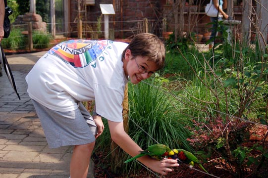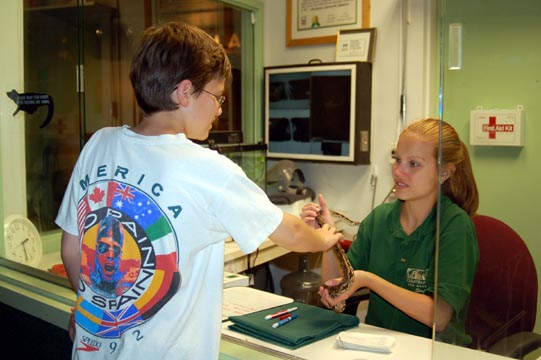 Daniel petting a snake in the reptile house at the Columbus Zoo.