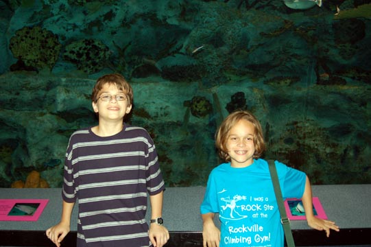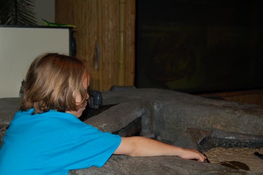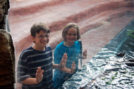 Daniel and Adam watch the otters.