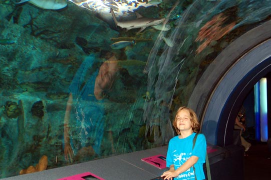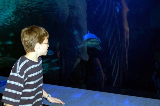 Here are Adam and his reflection beneath a shark.