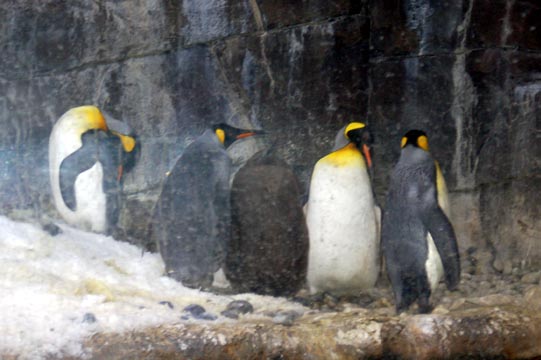 And this is penguin feeding time: while the Gentoo swim for their fish, the adult Kings waddle over for theirs.