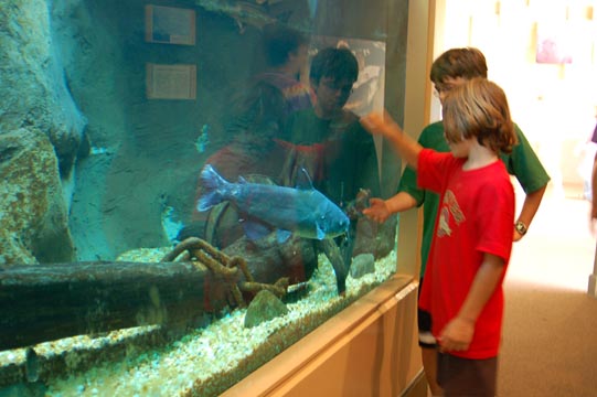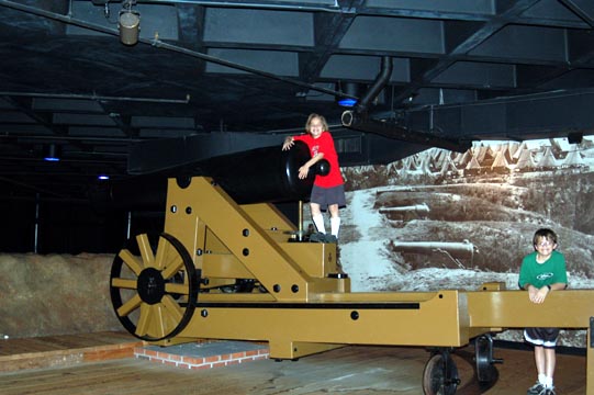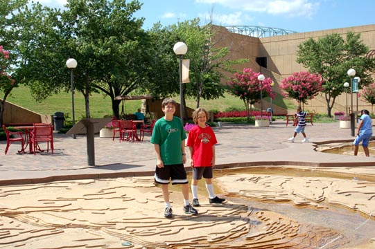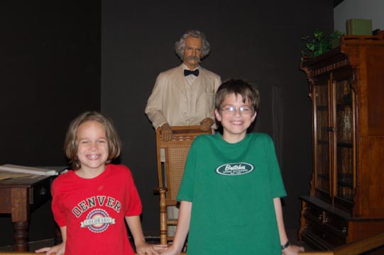 Inside the Mississippi River Museum, Daniel and Adam with Mark Twain...
