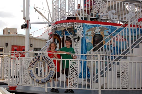 Daniel and Adam aboard the riverboat with blue lips from Snow Cones.