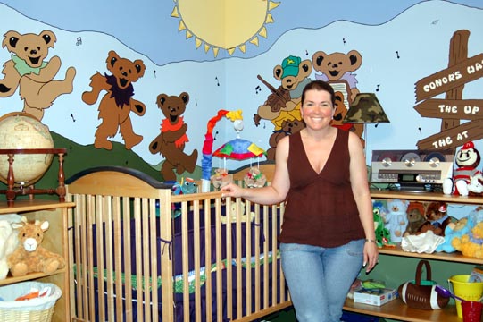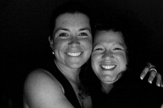 Here she is, in funky artistic black-and-white taken by her Macintosh, with me.