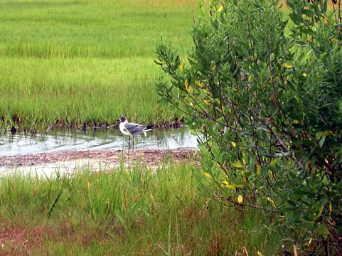 Laughing gull waiting for dinner to approach it unawares in the water.