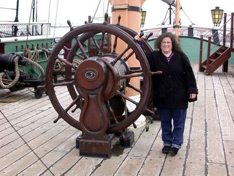 Here I am at the wheel of the HMS Trincomalee.