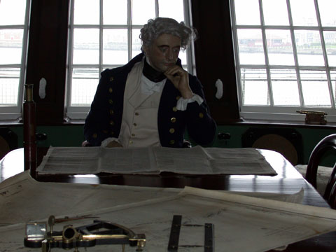 And here is our captain...a model of him, anyway. The instruments and the water out the stern windows behind him is real.