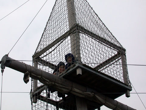 Daniel and Adam climbing the "rigging" in the ship-shape playground.