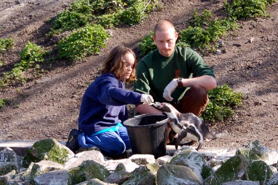 Adam, zookeeper Mark and baby penguin at the Dudley Zoo.