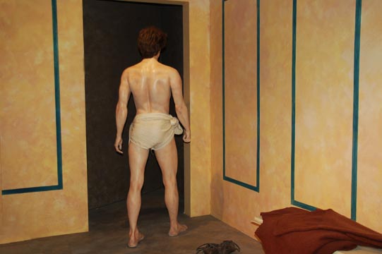 Sadly, we did not see this in Bath, as we did not visit the new spa and the Roman version has no half-naked men except in recreations like this.