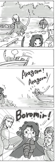The adventures of Aragorn and Boromir continue: Gerbils of Moria Leaving Lothlorien The One Ring Box Encounter The Great Breakup The Truth About Cats And Gerbils More Cats, More Gerbils A Tail of Aragorn and Boromir