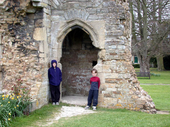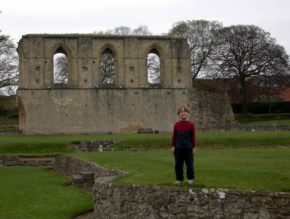 The kids in the ruins of Glastonbury Abbey.