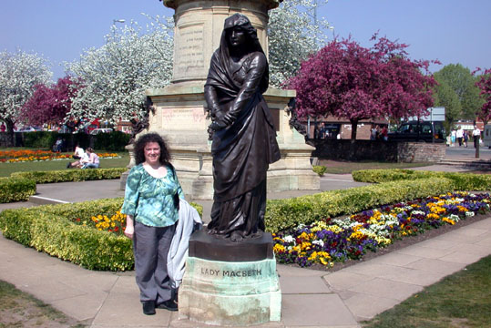 Me communing with Lady Macbeth in the park by the Avon River.