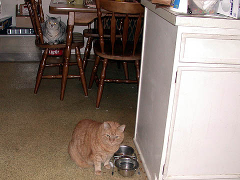 And here they are in the kitchen hoping someone will see their neglected, starving state.