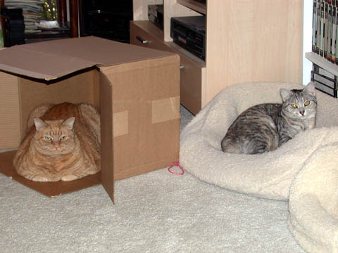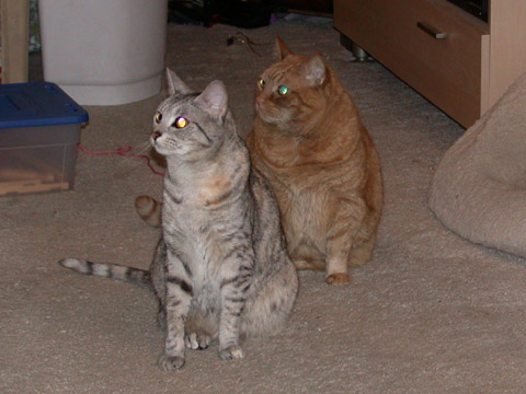 My cats are demons. Here they are looking hopefully toward the kitchen to see whether anyone is putting food in their dishes.