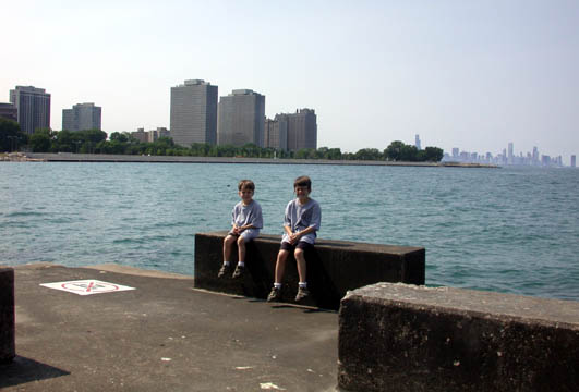 Daniel and Adam in Hyde Park with Regents Park in background.