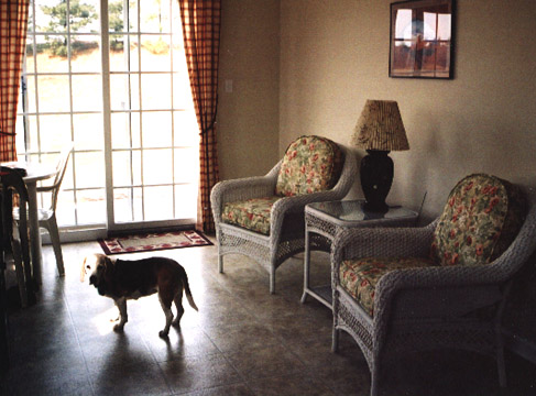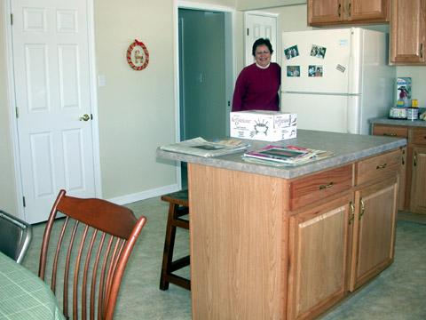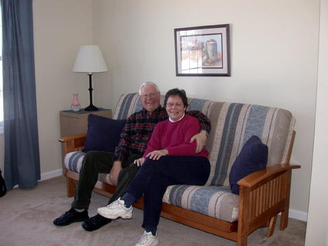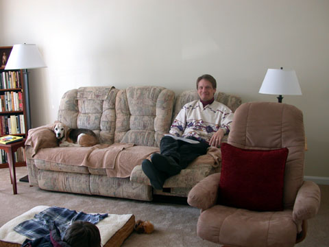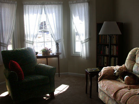 The wall hanging over the sofa from Ten Thousand Villages, a 2005 addition.