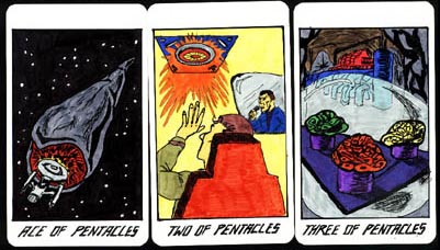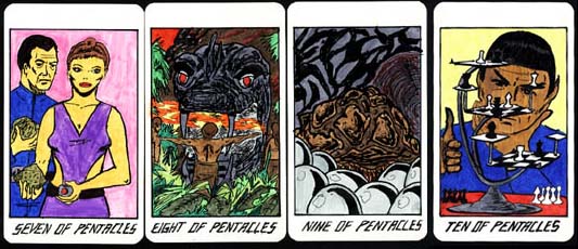 Nine of Pentacles The Horta "The Devil in the Dark" has been menacing miners disrupting Federation interests, particularly since the miners started finding and destroying silicon balls in their tunnels. Only when Spock melds with the injured creature do the miners realize that the Horta has merely been protecting its young -- its eggs -- and that this rare silicon-based being who forms natural tunnels is willing to work with the miners to speed their access to the minerals they need.