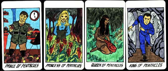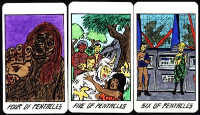 Five of Pentacles Tyree, Kirk, McCoy, Nona, and the Mugato "A Private Little War" breaks out when Kirk -- attacked by the Mugato and cured by the wife of his old friend Tyree -- is torn between loyalty to Starfleet, to his friend, to the desirable woman who saved his life, and to Tyree's people, who are being menaced by both the Klingons and the Federation through exposure to high-technology weapons, involving them in a war which is not theirs.