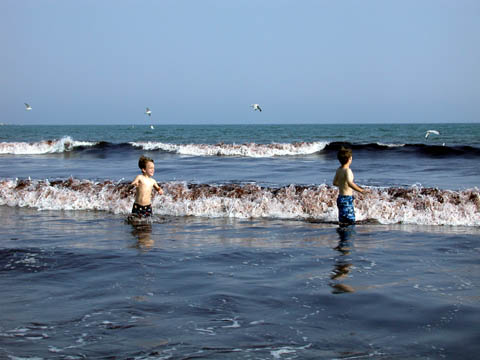 Here are boys at Easton Beach, down below the cliff walk which allows the mansions to be seen from the waterside.