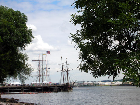 The Coast Guard brought a ship too. You can see her colorful flags through Sultana's rigging.