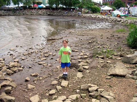Gazela and Sultana from the direction of the stage and fairgrounds, near low tide.