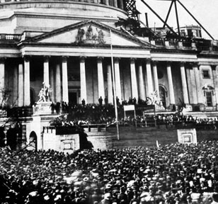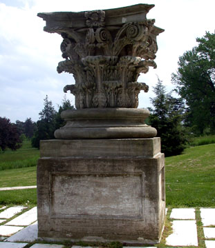 | The National Capitol Columns, Corinthian sandstone, that originally held up the dome of the Capitol Building... | ...but were replaced at some point after Lincoln's inauguration (pictured above, from sign at site) with marble, and moved to stand in the field at the Arboretum. |