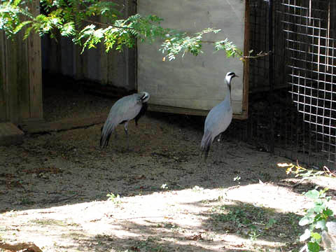 A green heron beneath the Maryland flight cage studies an egret across the way.