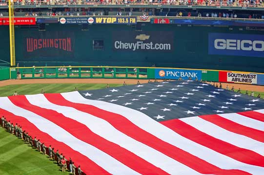 The DC National Guard rolls out the colors, a presentation of the largest flag I have ever seen.