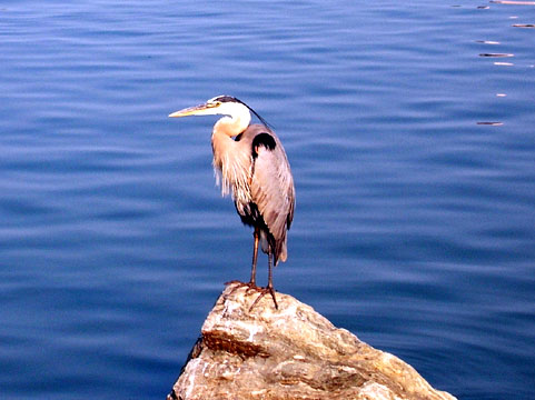 A heron in front of the hotel on the retail side of the Rio complex lake.