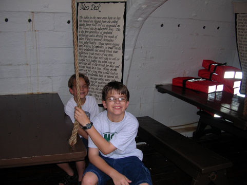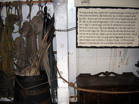 The Bounty's tours teach history as well as sailing. Signs like this one explain the function of the mess (and why elbows on the table was considered bad manners on land), arms chest (whose stolen keys led to the mutiny), great cabin (which on the original Bounty was apparently used as a greenhouse to transport breadfruit plants), etc.
