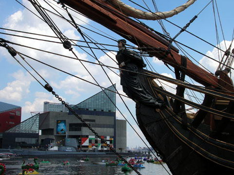 The USS Chesapeake and the Power Plant from the Bounty. Many of the best views of the harbor are from the decks of ships like this one and the Constellation, though really I think the best view is probably from the tall ships Pride of Baltimore and Clipper City as they cruise in and out.
