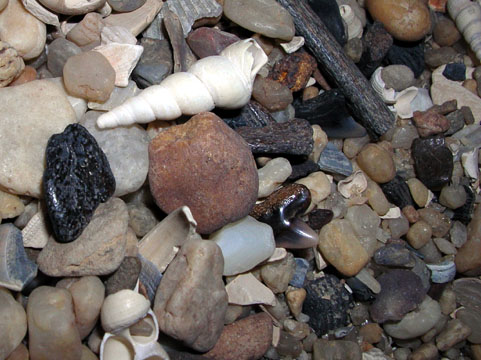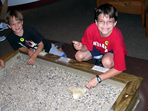 Shells, bone fossils and a shark's tooth in the fossil pit where kids get to find, identify and take home a treasure.